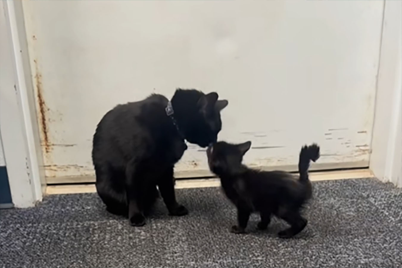 Jamestown, CA – The kitten in the image box is learning how to get around with the help of the Tuolumne County Animal Control office cat, which has taken the kitty under its wing, as it also suffered the same affliction.