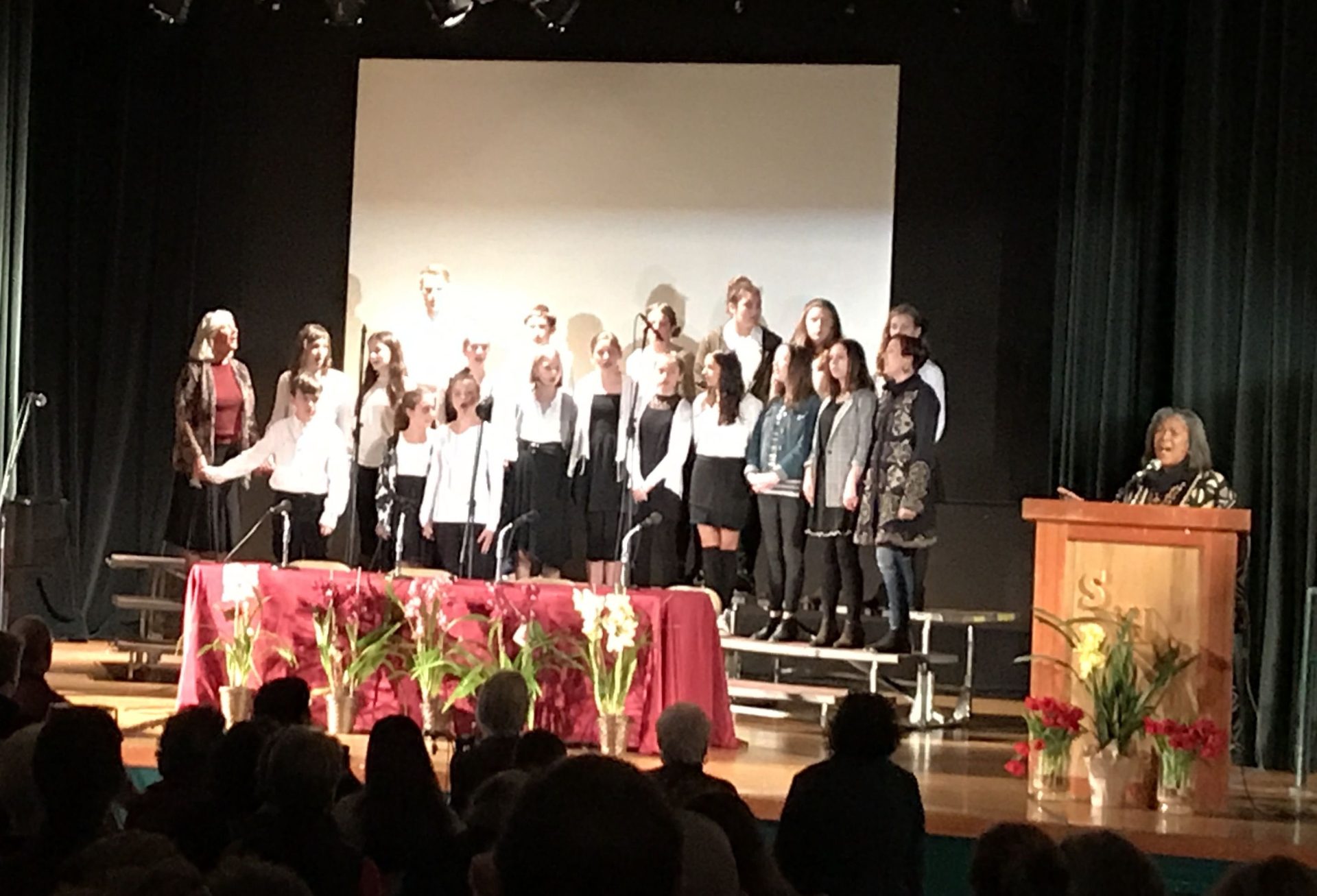 • Michelle Allison speaks with the Sierra Waldorf Choir in the background