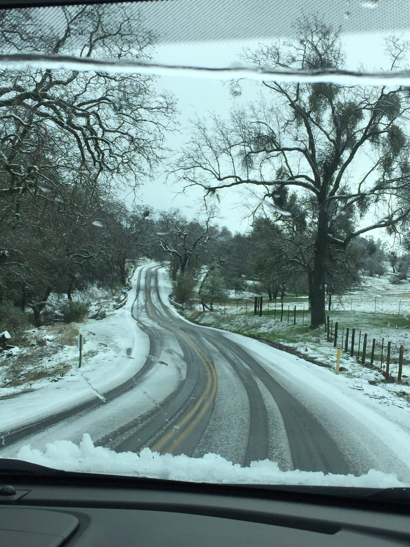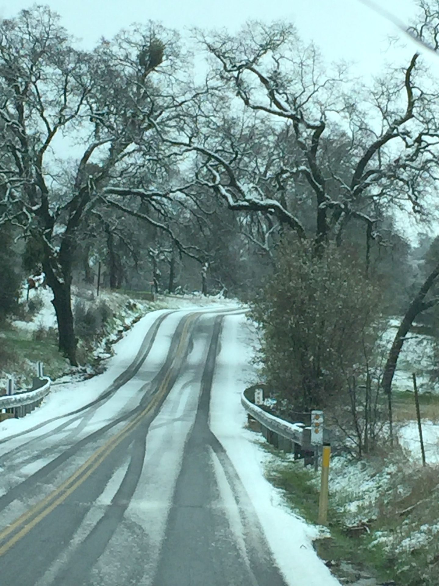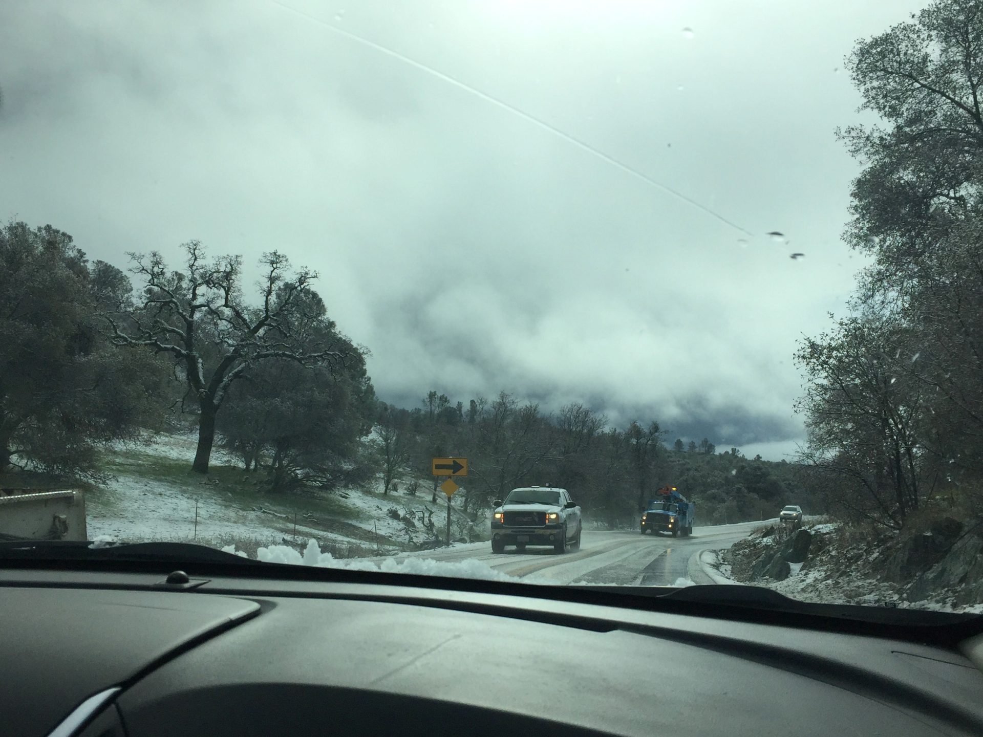 Sonora, CA — The wintry mix of stormy weather is bringing a range of travel conditions through the lower elevations.
