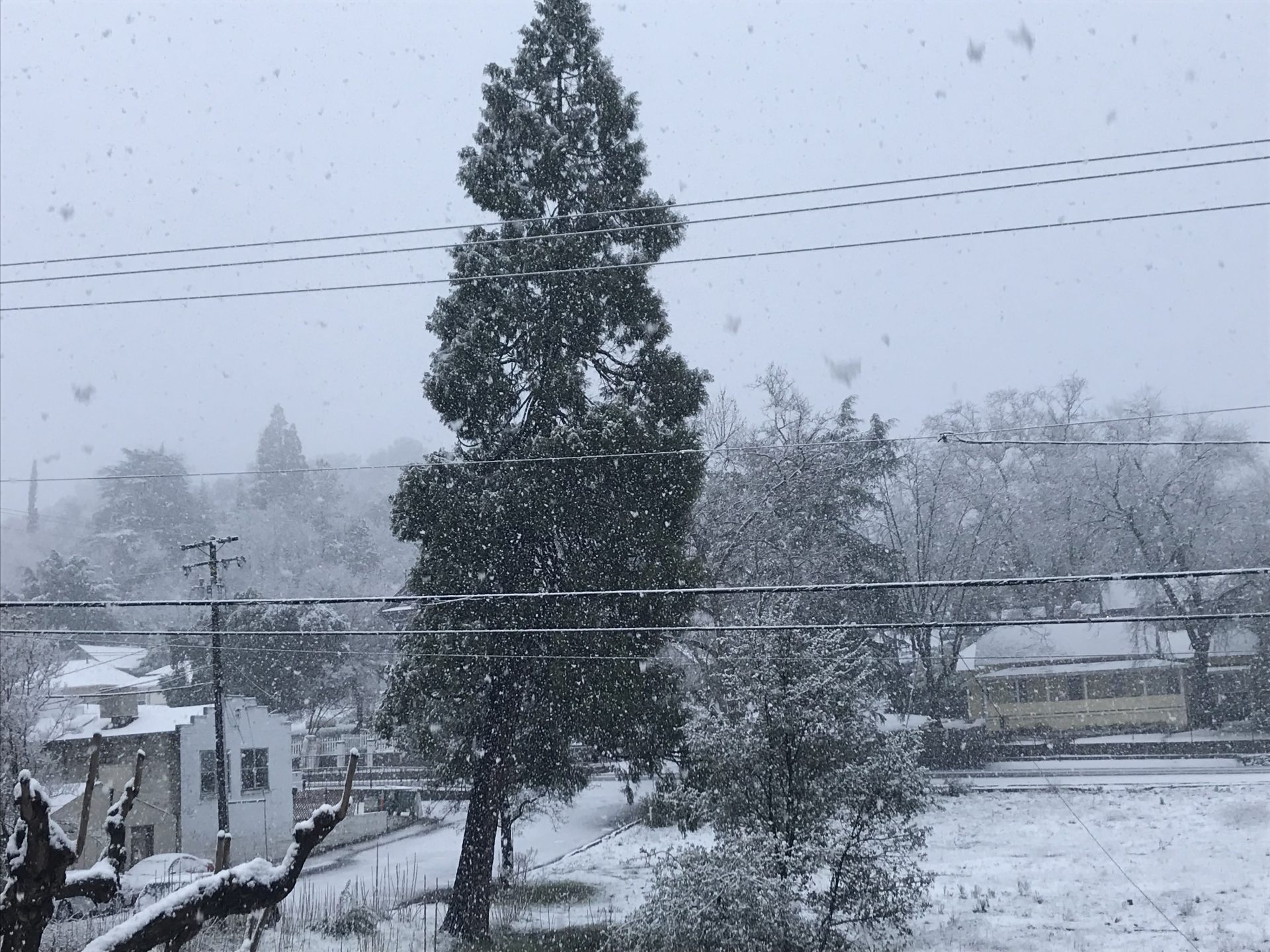 Low snow is prevalent in the region. During the six o’clock hour this morning heavy snow flakes began falling in lower elevations, such as downtown Sonora.