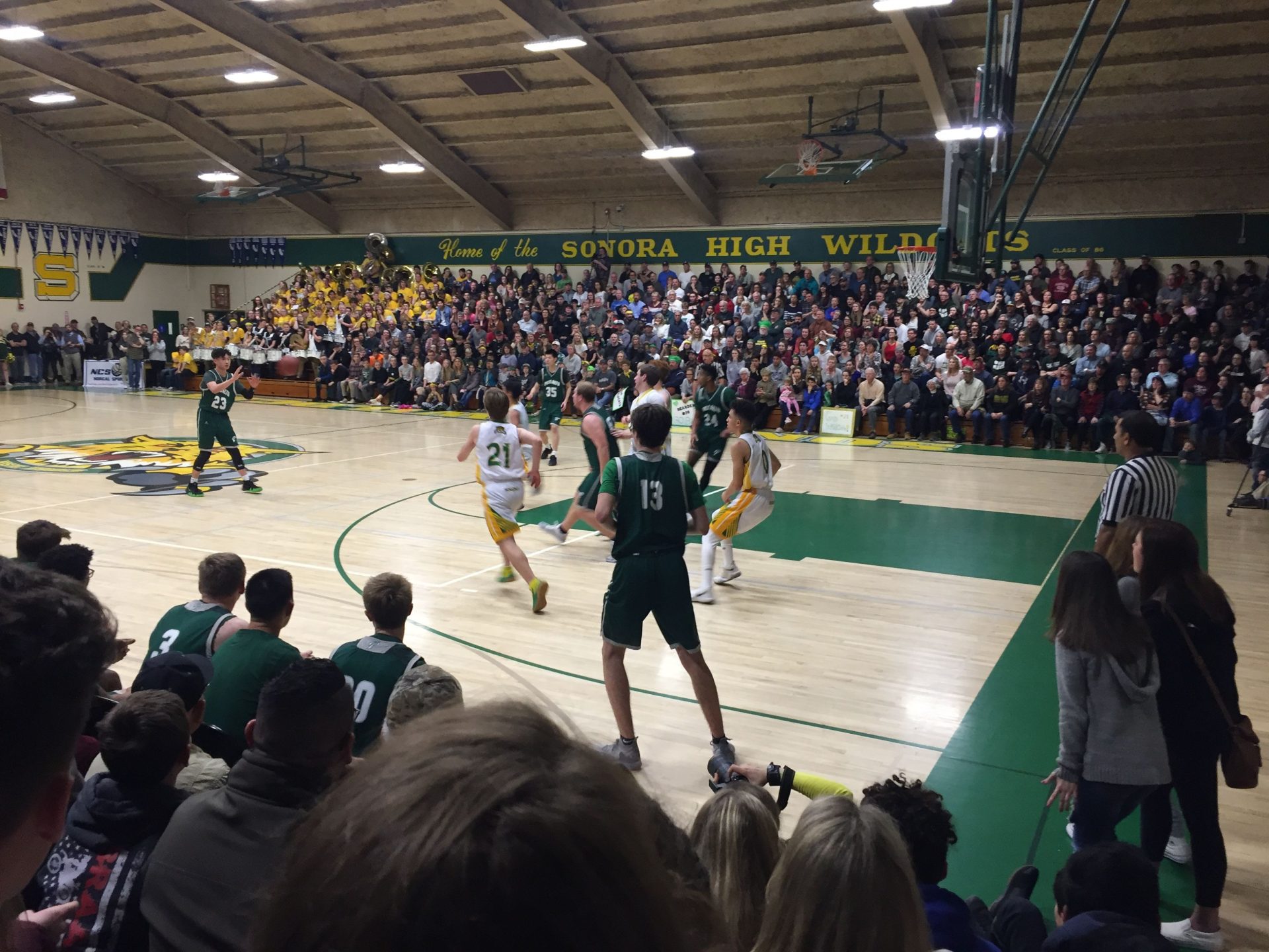 A strong crowd was on hand at Sonora High School Tuesday evening. Sonora High’s Austin Patterson scored 32 points for the Wildcats, including six three pointers. The Wildcats, who last week clinched the CIF Sac Joaquin Division IV championship with a 73-70 win over Liberty Ranch, ended the year with a 27-5 record.  Palo Alto now moves on to face Stuart Hall High School on Thursday in the second round of the playoffs.