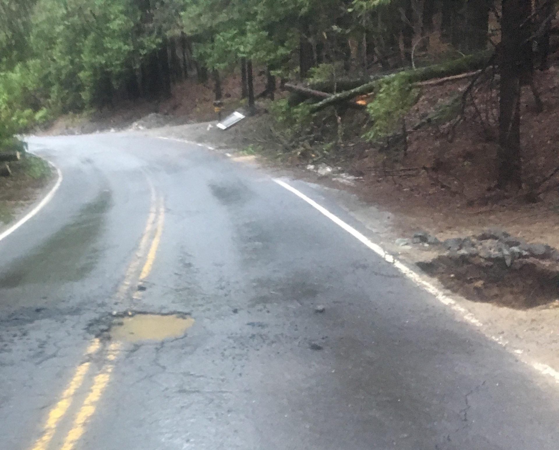 Vehicles have been passing through this morning, but county road crews have just arrived on scene to assess the situation, along with the Tuolumne County Fire Department. If you are planning to travel on Kewin Mill Road, near Comstock Ranch, be prepared for activity and the possibility of needing to take an alternate route.