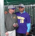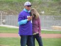 Reggie threw the first ball of the game. all money made from ticket sales, more than $10,000 in raffle prizes, and food will be donated to Bret Harte High school programs, and scholarship funds.