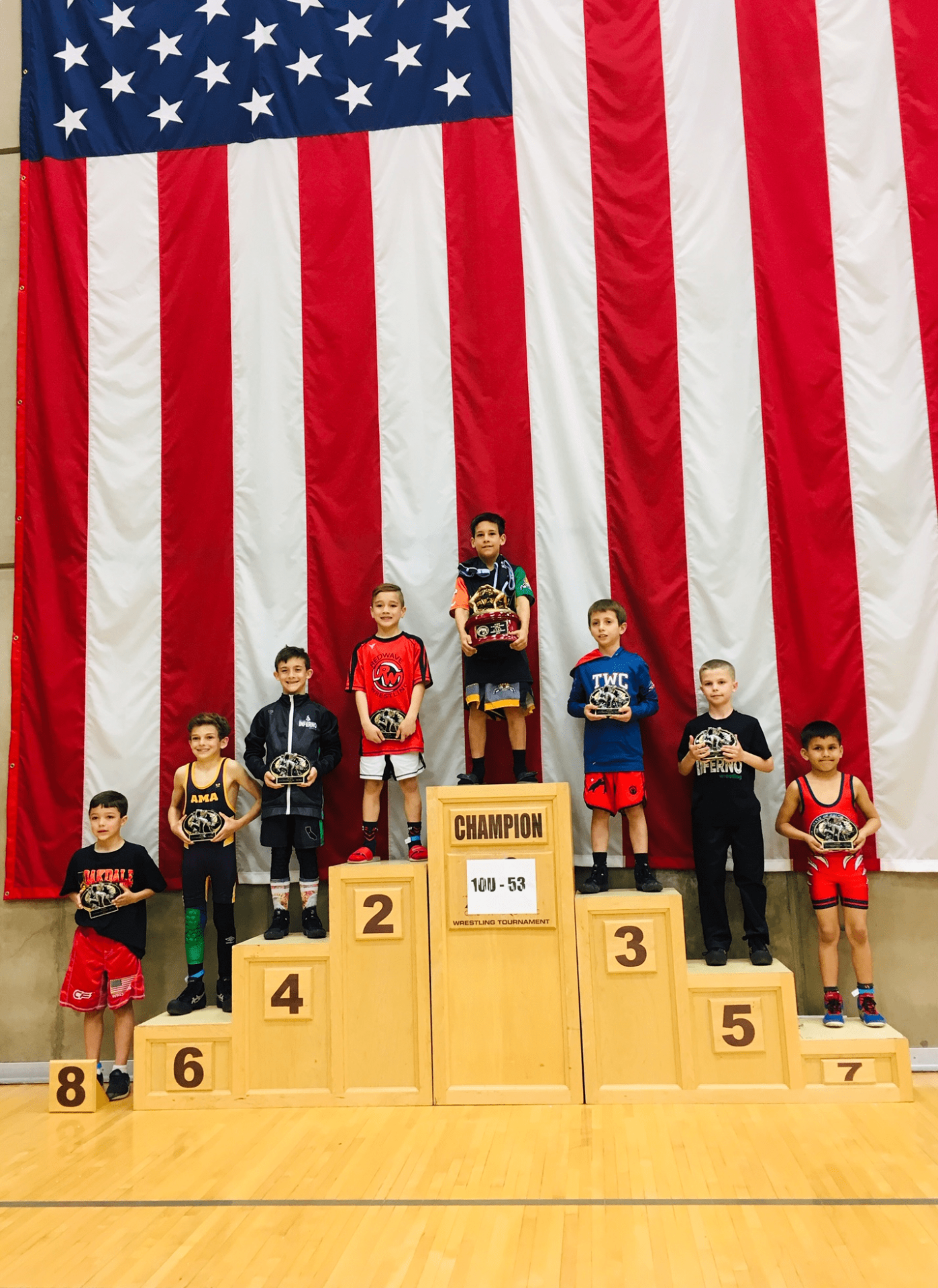 The athletes wrestled two or more matches each against other state qualifiers traveling from as far as San Diego with Grycel clinching three match wins, which earned him a sixth place finish in the 10U 53lb class.