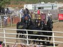 The parade lasted for just over two hours and then the crowded headed to the Mother Lode Fairgrounds to watch all the roping, riding and wrestling. Cowboys and Cowgirls competed in calf roping, bucking broncos, barrel races, and the main event bull riding. Also a big attraction were the Percheron Thunder a team of six horses with their trainer riding them roman style, standing on two of the horse’s backs.