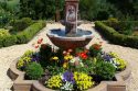 The AmRhein-Herrick garden surrounds a Mediterranean/Tuscan-style home. Jean and Bob wanted a Tuscan garden that would take advantage of the mountain backdrop with minimal upkeep. They decided against a lawn and planted a flower garden and olive trees in the front. Next, they placed hedged rectangles, with roses as anchors, around the back. The garden has evolved from a formal garden of roses, day lilies and sedum to a naturalized landscape filled with native plants, such as sages, fuchsias and penstemon.
