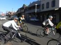 Washington Street in downtown Sonora was at a standstill briefly this morning for an Amgen promotional photo shoot. About 20 representatives from the Tour bicycled through downtown and around Courthouse Park. Crews were on hand to take videos and photos.