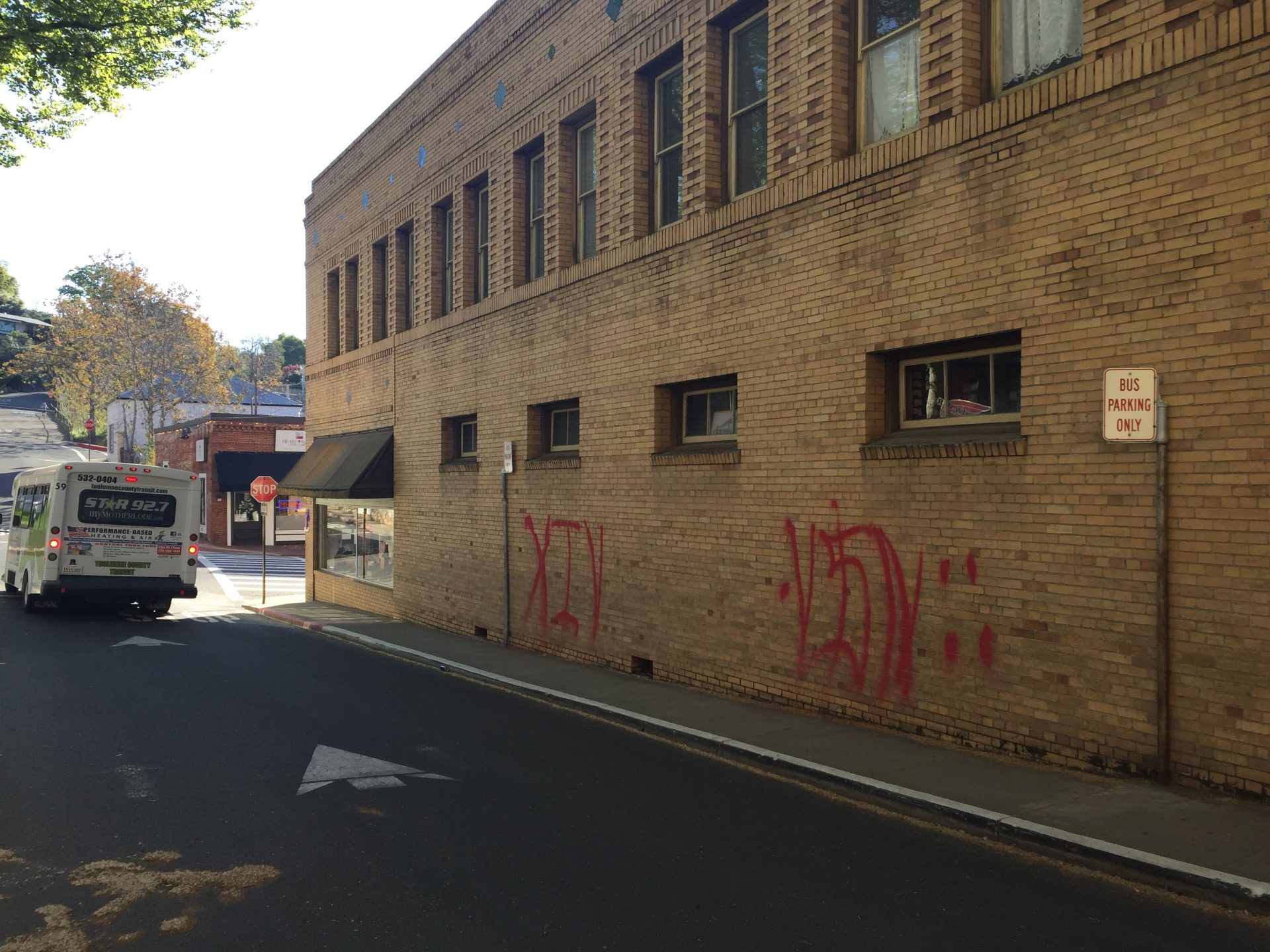 Sonora, CA — The Sonora Police Department is investigating multiple reports of vandalism throughout the city, over the past 24 hours, in which red spray paint was used to tag buildings.