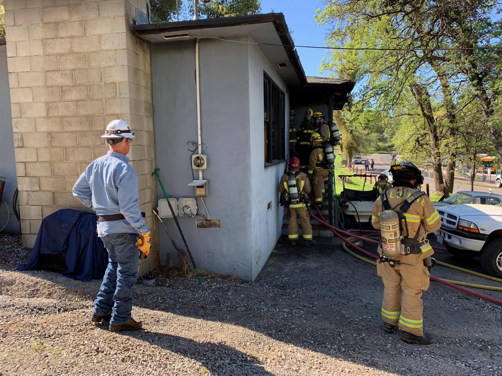 Original story posted at 9:10am: Tuolumne, CA — Firefighters are on the scene of a structure fire across the street from Summerville Elementary School.