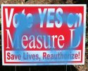 The signs are for Measure D, a proposed Fire Tax designed to help continue the operations of the Groveland Fire Department.