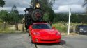 Bell Mooney Road was blocked off for a short period this morning for a photo shoot to recreate the scene where Sierra #3 pushes the Delorean, only this time it was the Corvette. As many Mother Lode residents know, Sierra #3 was the train actually used in the filming of Back to the Future 3, and it is housed at Railtown.