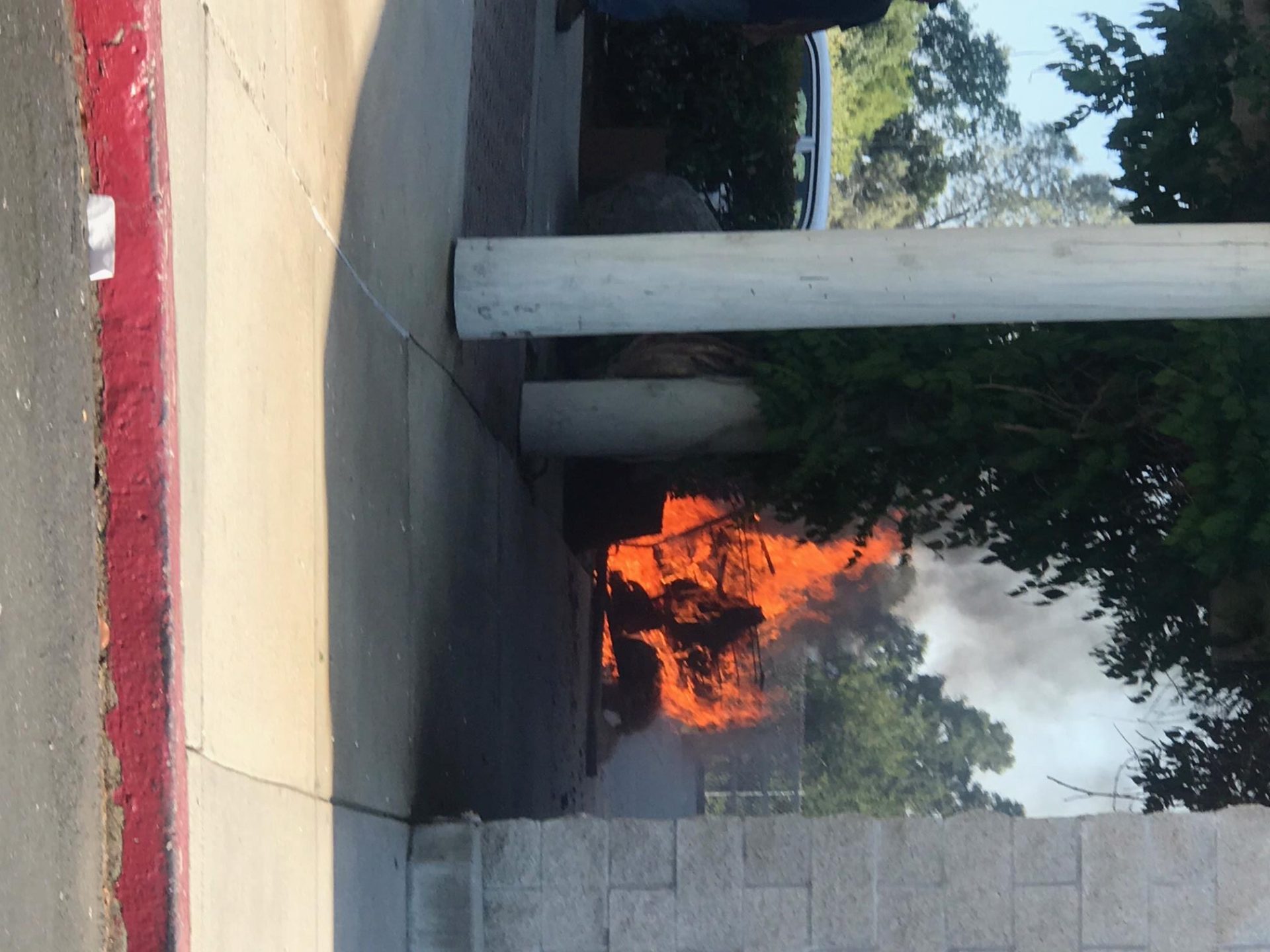 Shoppers were alarmed by the sight of flames and billowing smoke coming from between the Jamba Juice and Staples store. Initially, resources were dispatched for a report of a brush fire behind the center, but when firefighters arrived on the scene they saw flames shooting out of a shopping cart, and the engine of a Toyota Corolla the cart was up against, as the picture in the image box shows.