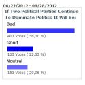 In a recent myMotherLode informal poll question it was asked, “If Two Political Parties Continue To Dominate Politics It Will Be: Good, Bad or Neutral. Fifty-six percent voted “Bad”.