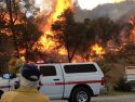 In total, two residential structures, one an A-frame and a stick frame, as well as one out building, one pick-up, two cars, a recreation vehicle and one travel trailer were damaged in the fire. CAL Fire says there have been no injuries.