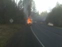 A fire started in the engine compartment at around 8:30 this morning. All passengers were able to safely get off the bus. Firefighters are on scene, so travel with caution in that area.