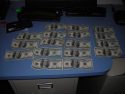 Upon examining the bills closely, it was determined that they were acid washed five dollar bills, with an image of a hundred dollar bill printed over the top. The security five dollar band and Lincoln watermarks were still visible when examined closely by the officer.