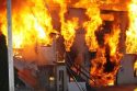 Sonora, CA – Firefighters burned down a building Sunday that was set for demolition on Mono Way.