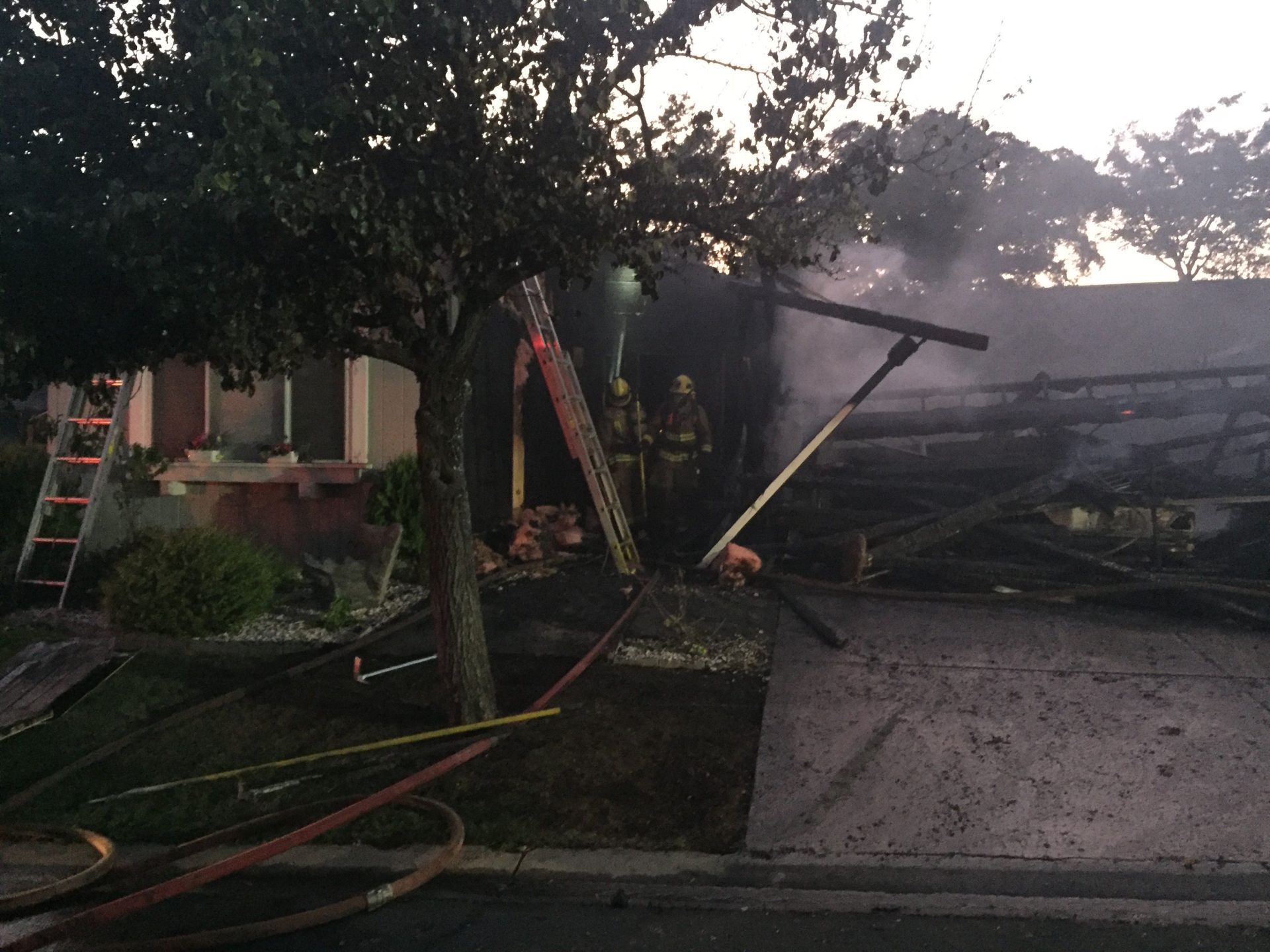 Update at 7:50 pm: Tuolumne County Fire Department officials tell Clarke Broadcasting that the garage was destroyed, as can be seen by the pictures in the image box, and a neighboring home suffered some damage as well. What sparked the blaze is under investigation. The American Red Cross tells us that a volunteer Disaster Response Team (DAT) is on scene assisting the residents. Further details on the blaze are below.