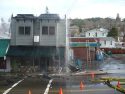 Firefighters vented the building as smoke billowed from the burning structure. Once firefighters had exited the building the structure was drenched from ground level and a firefighter on a hook and ladder truck.
