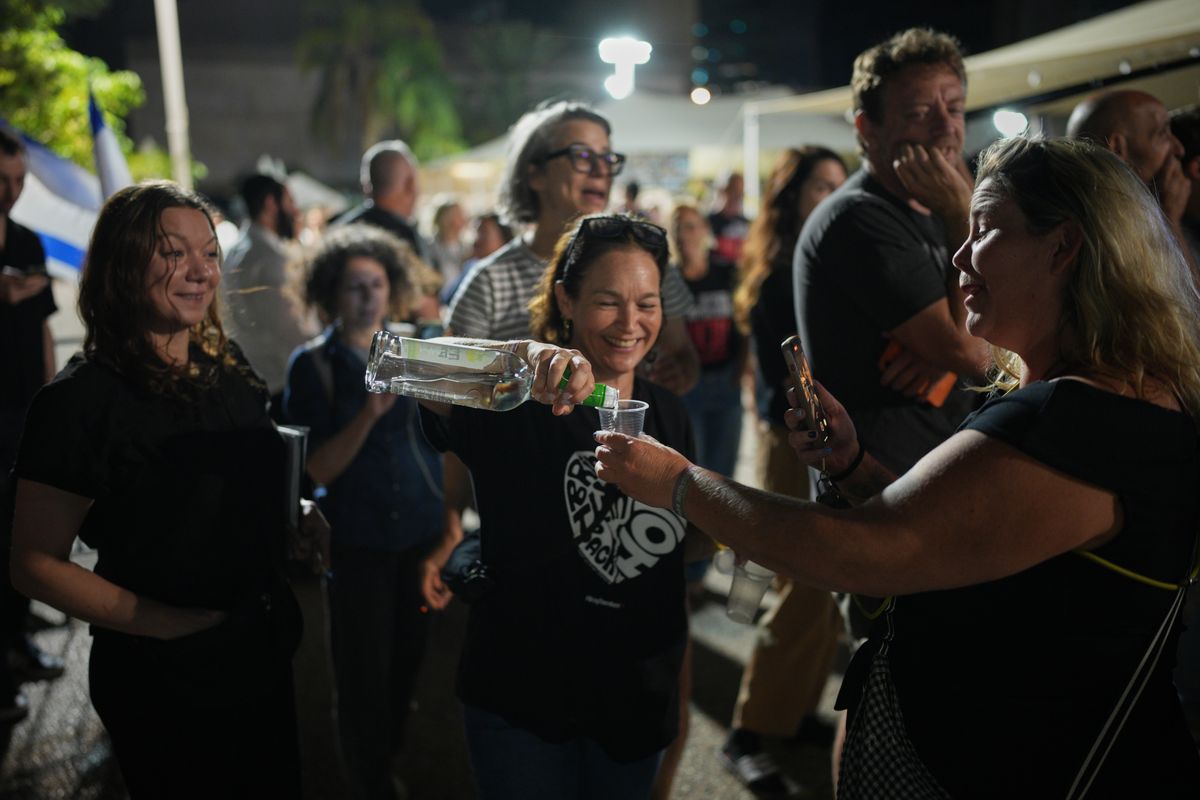 A Champagne bottle was popped open to cheers from the crowd. Sweets were doled out. Tears of joy mixed with laughter and long embraces as the news sunk in: The struggle to free Israeli captives held in Gaza appears to finally be coming to a close.