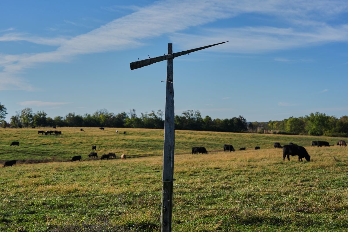 In some of his fields, he erects a scarecrow of sorts — a dead black vulture — aimed at scaring off the birds. It’s a requirement of his depredation permit through the Kentucky Farm Bureau, which allows him to shoot a few birds a year. The dead bird keeps the live birds away for about a week, but they eventually come back, he said.