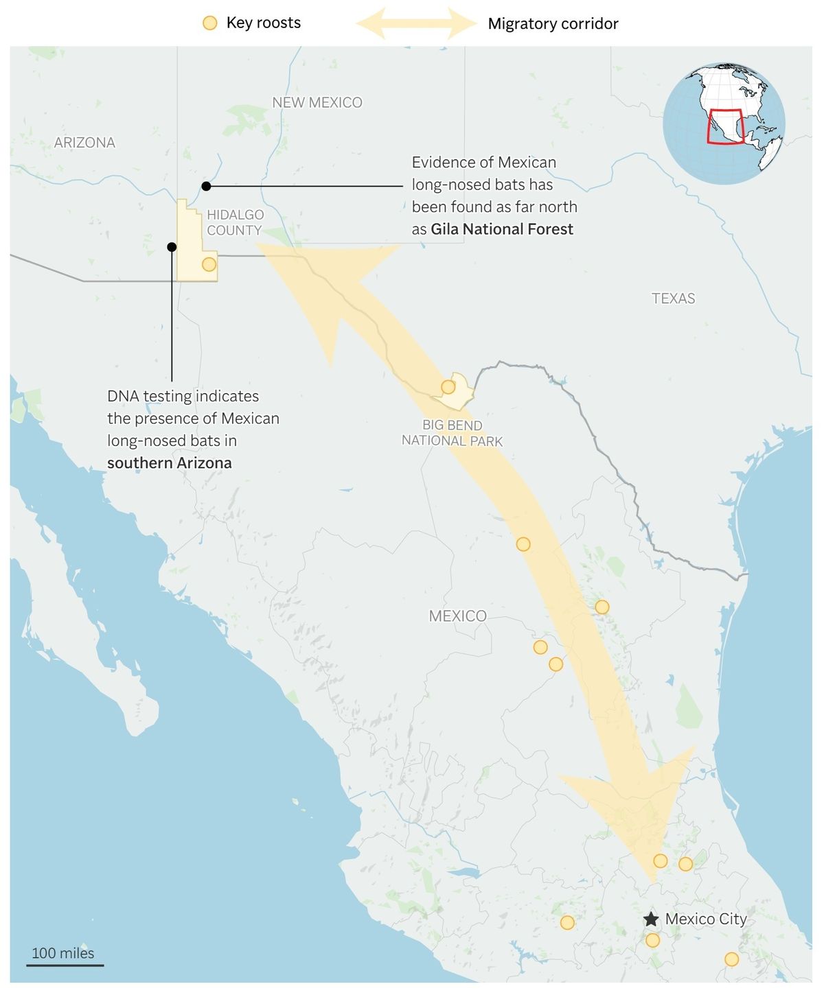 Bat Conservation International announced on Tuesday that swabbing agave plants and hummingbird feeders on the fringes of New Mexico’s Gila National Forest also turned up proof that the bats are farther north than ever before.