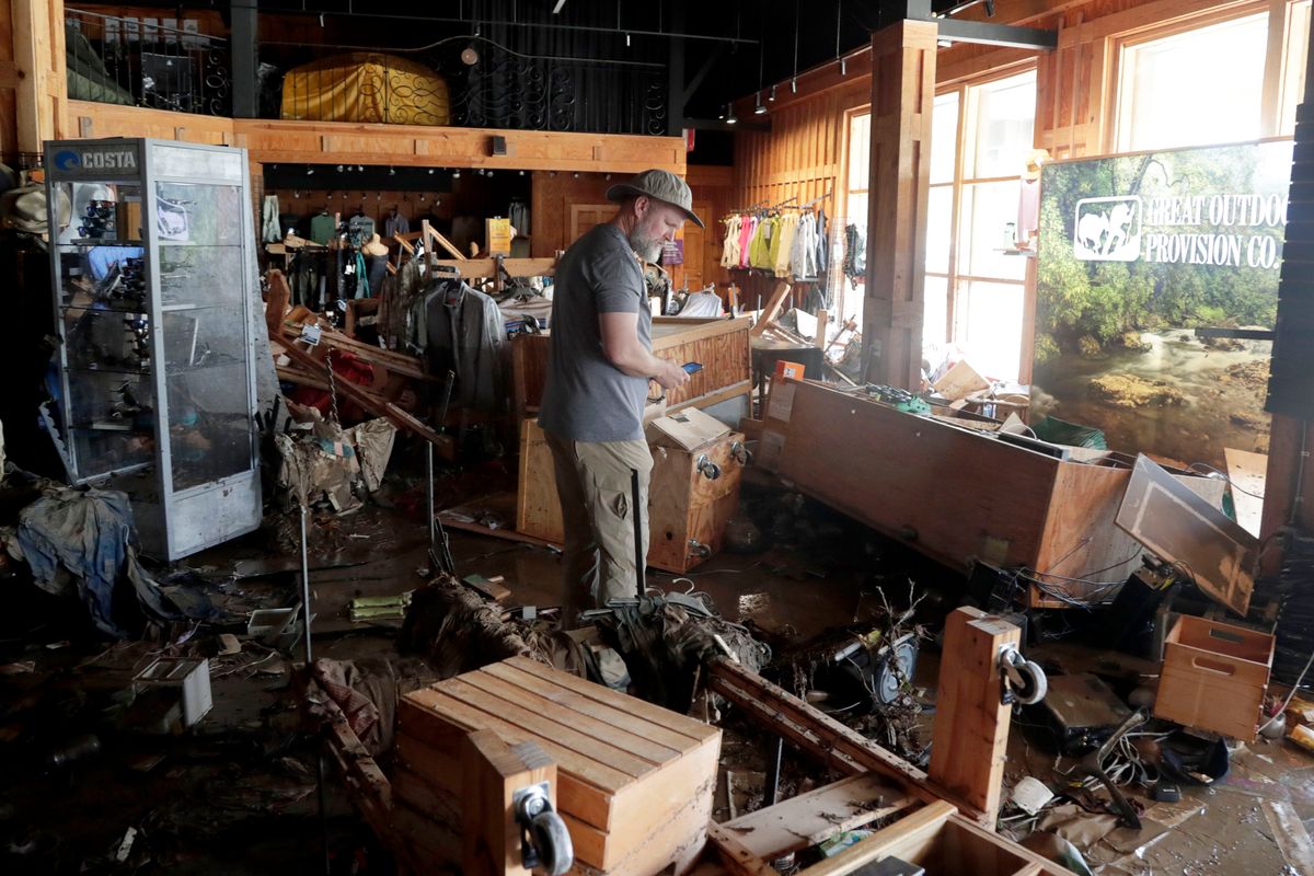 Floodwaters inundated Chapel Hill’s Eastgate Crossings shopping center, where the red-framed glass doors of a Talbots store were blown in and debris-specked white mannequins littered the floor. Next door, at the Great Outdoor Provision Co., manager Chad Pickens said kayaks ended up 30 feet (9 meters) from where they had been on display, and shelves in the shoe room were toppled like dominoes.