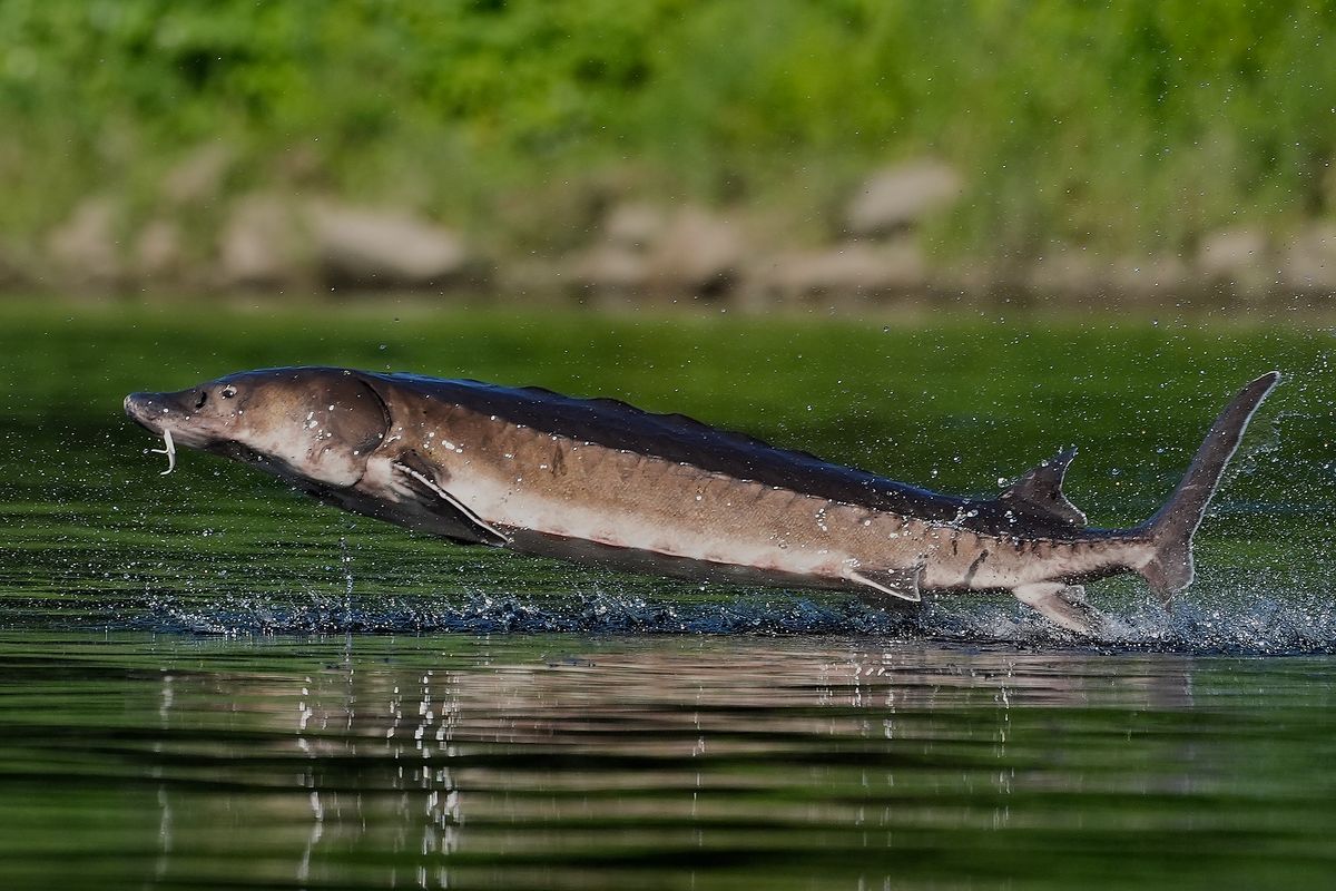 Scientists have proposed a number of reasons why sturgeon jump out of the water, including regulating their swim bladder, communicating with other sturgeon, shedding parasites and avoiding predators. Shortnose sturgeon can weigh up to 60 pounds (27 kilograms), while Atlantic sturgeon can be much larger, with some weighing as much as 800 pounds (363 kilograms).