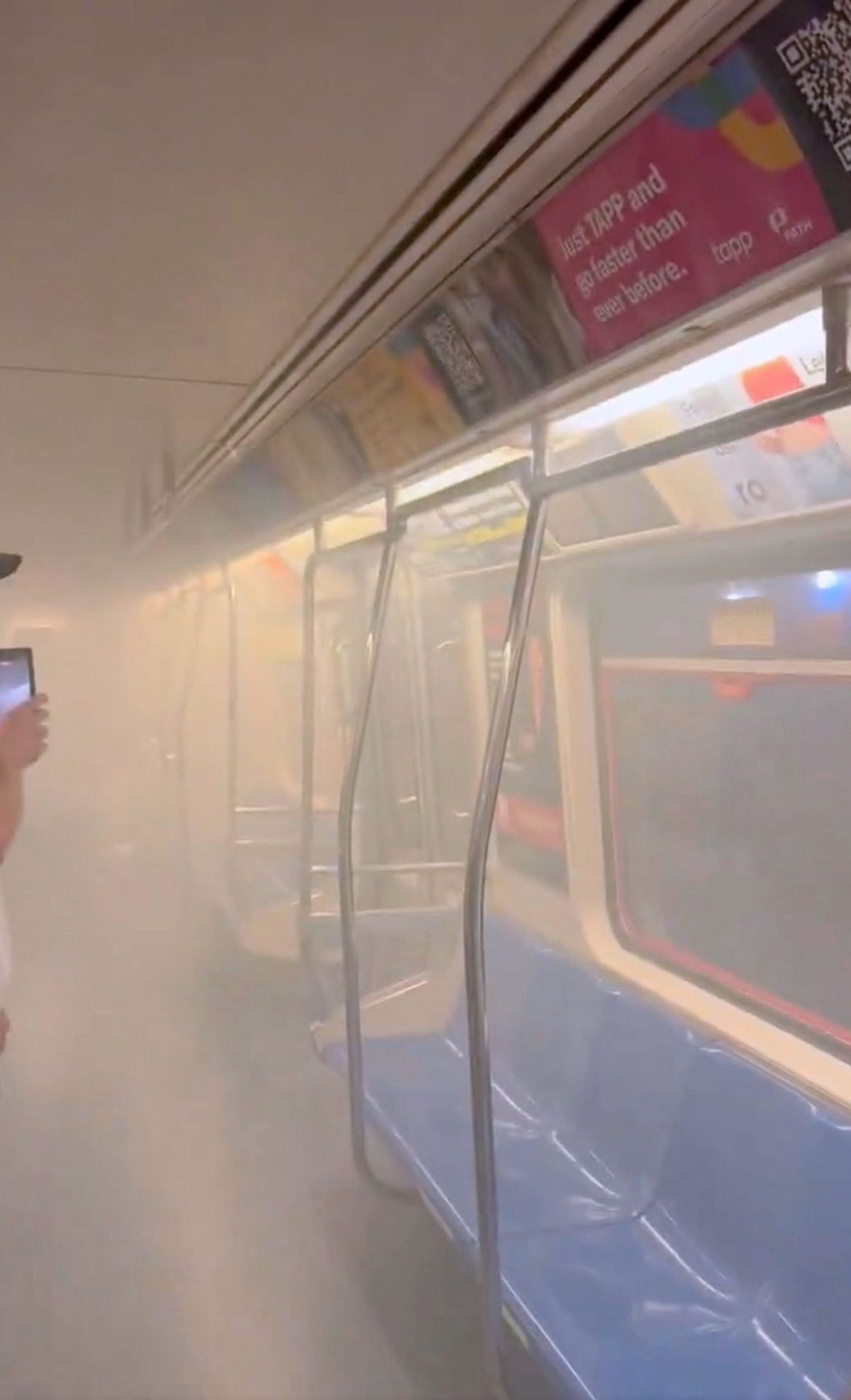 A roughly 30-second video posted to social media by a passenger showed thick smoke on a Port Authority Trans-Hudson train car at the Newport station in Jersey City, New Jersey. People can be heard on the video saying “open the door,” and “easy, easy,” as they eventually disembark.