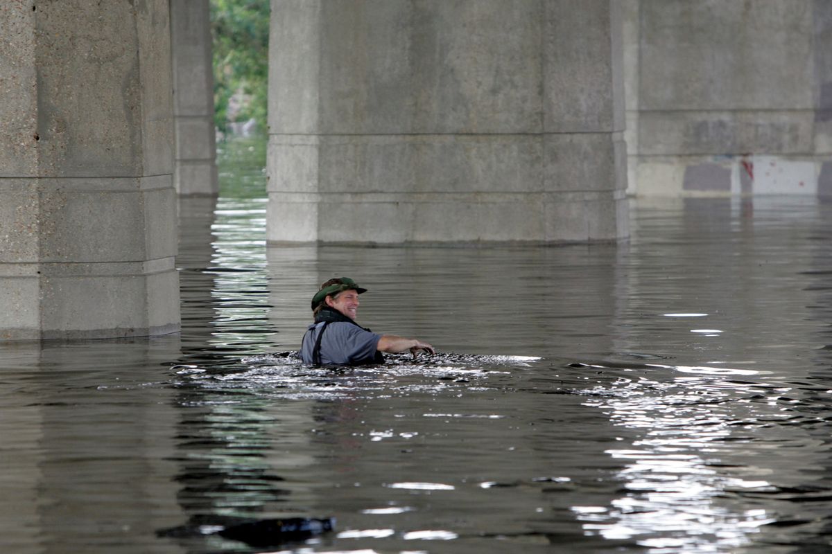 BRANDON: Every drop of water that falls in New Orleans has to be pumped out. The majority of the city is below sea level. So if a heavy rain comes, instead of flowing down a storm drain and flowing down to the Potomac like we are here in Washington, that flows to a canal, which then pumps the water out into a larger canal and then out into Lake Pontchartrain. For the storm, I was offered the opportunity to go with the New Orleans Police SWAT team during Katrina. I had made contacts with those officers many times and covered them many times, and they allowed me to essentially embed with them and stay at where they were, knowing that they would be some of the first of the first responders during the storm. The boat I was in rescued over a hundred people.