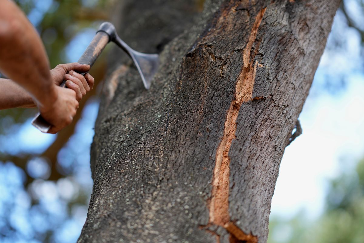 The quiet woodland echoed with the gentle thud of the workers’ axes. They gently pierced the bark, feeling for the thickness of cork that could be peeled off without harming the trunk. The Portuguese have harvested cork this way for more than 200 years.