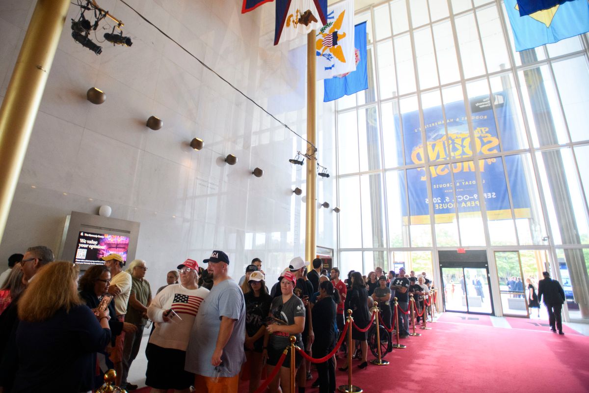 The vigil at the Kennedy Center was among numerous tributes to Kirk that also included moments of silence at professional sporting events. The line of mourners in Washington wrapped around the center. Some people wore suits or summer dresses, while others were dressed in jeans and wore “Make America Great Again” caps.