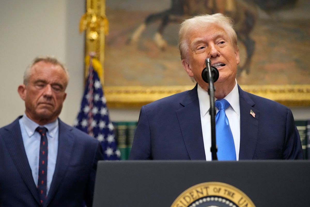 The president spoke from the Roosevelt Room of the White House, accompanied by Health and Human Services Secretary Robert F. Kennedy, Jr., and other administration officials who focus on health.