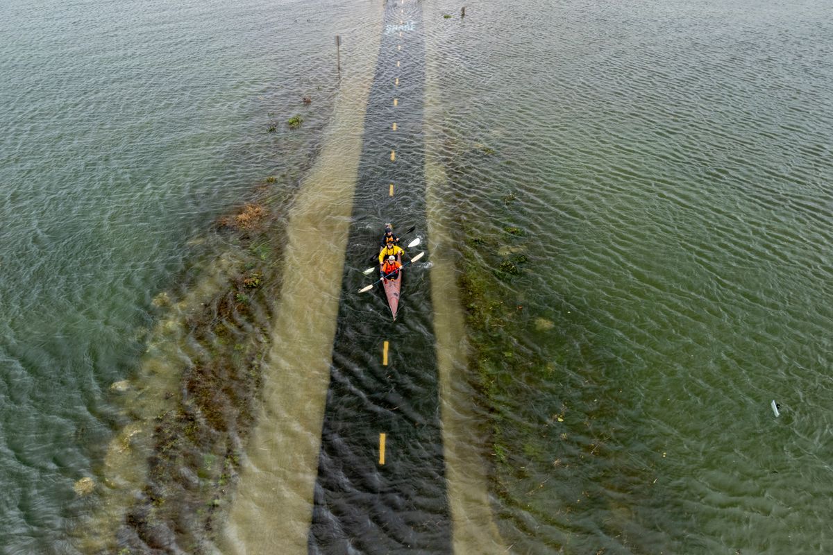 Authorities in the affected communities, which are north of San Francisco, asked people to stay home until waters recede. Some people kayaked along swamped streets, while others waded through water above their knees.