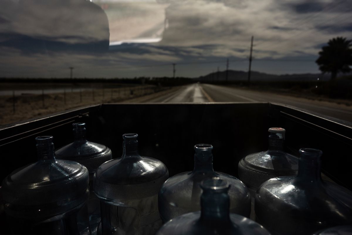 Back in the California desert, water jugs and stacked packs of bottled water are a common sight inside and outside homes.