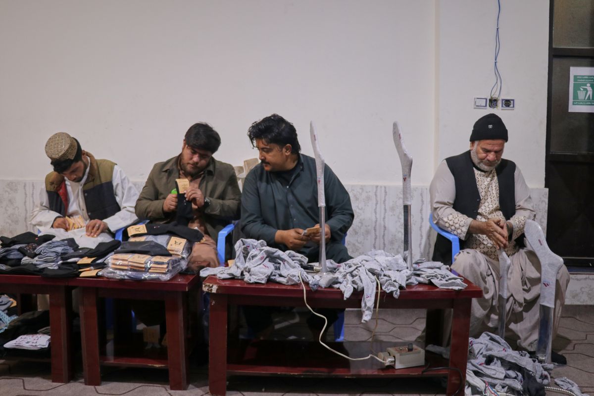 “I became disabled due to the explosion. Both my legs were amputated,” Shahabuddin, who like many Afghans goes by only one name, said during a brief pause in his work in early December. “Now I work here in a sock factory, and I am very happy that I have been given a job here.”