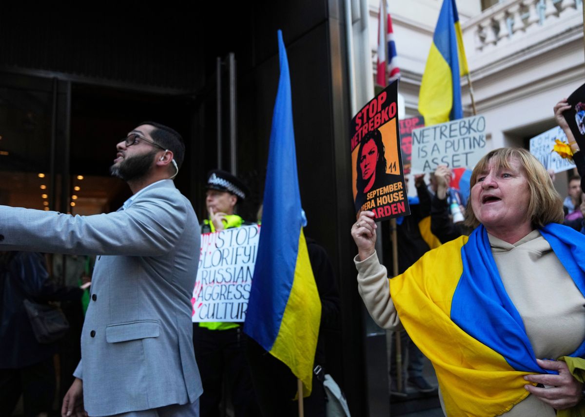 LONDON (AP) — Dozens of Ukrainians and their supporters have demonstrated outside the Royal Opera House in London to protest a performance by Russian soprano Anna Netrebko.