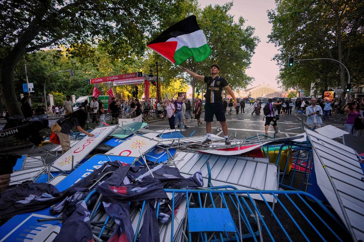 Several hundred protesters stayed on the road where the race was supposed to pass by. Anti-Israel banners were also hung from nearby buildings. The protests continued well into the evening in Madrid, most of them peaceful.