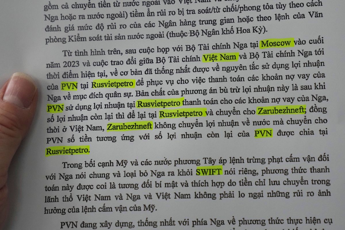 “In the context of the U.S. and Western countries imposing sanctions on Russia in general and removing Russia from SWIFT in particular, this payment method is considered relatively confidential and appropriate because money only circulates within the territory of Vietnam and Russia and Vietnam does not have to worry about the risks of being affected by the U.S. embargo,” PVN’s general director, Le Ngoc Son, writes in the June 11, 2024, document.