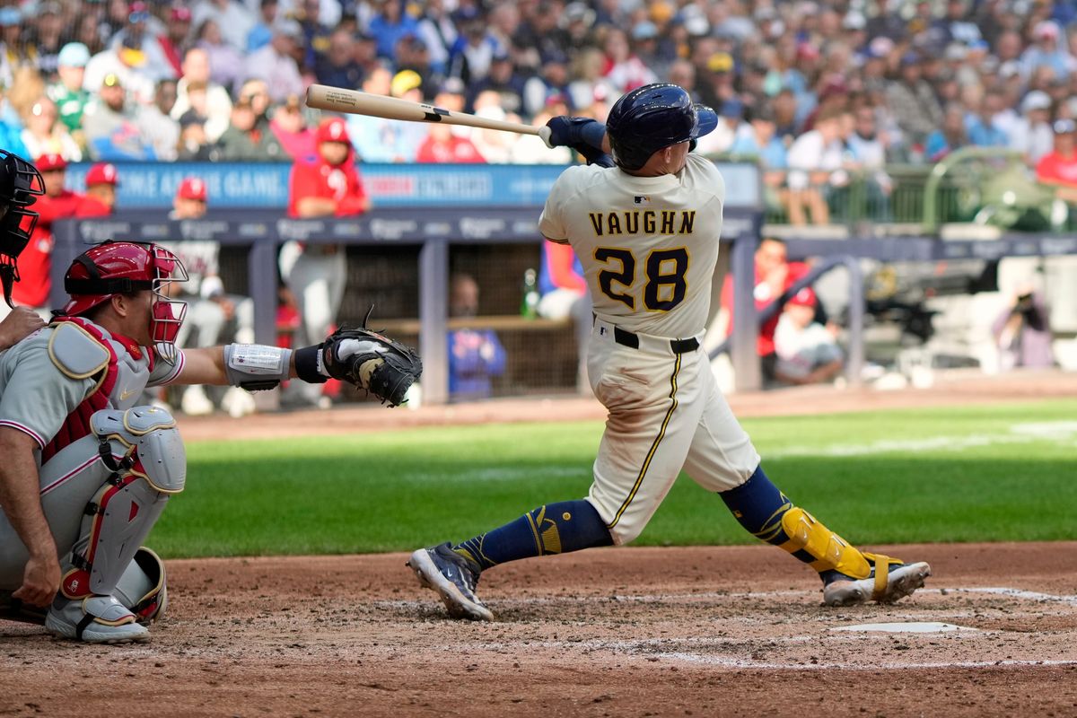 The Brewers couldn’t capitalize after William Contreras walked and Vaughn doubled to put runners on third and second with nobody out in the sixth.