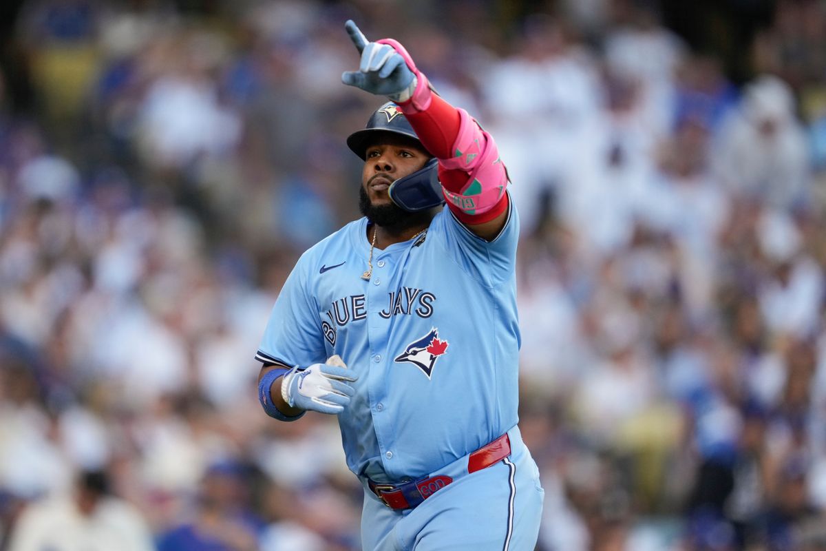 Guerrero then blasted an 0-1 fastball to left to extend his own Blue Jays record for homers in a postseason by hitting it 394 feet. The star slugger also had the tone-setting homer in Game 4, connecting off Shohei Ohtani.