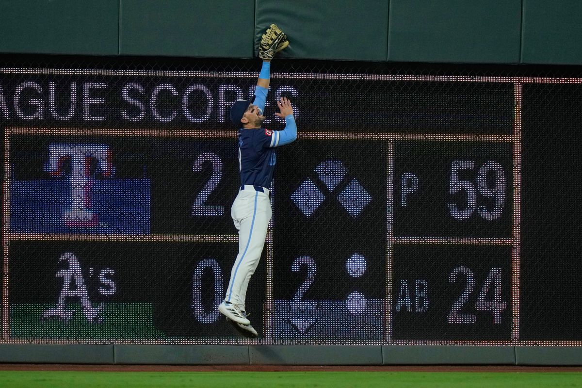 With runners at the corners, Carpenter leapt to snag Kyle Isbel’s drive at the top of the fence in right field, ending a scoreless sixth inning and maintaining Detroit’s 4-3 lead.