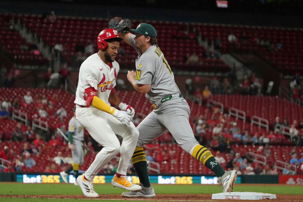 Zack Gelof doubled leading off the fifth and Mikolas walked Kurtz intentionally with two outs before retiring Jacob Wilson on an infield pop-up to keep it 1-0.