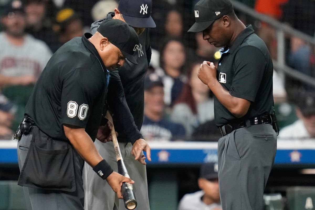 During the lengthy delay in the ninth inning Thursday night in Houston, both managers talked to home plate umpire Adrian Johnson. The umpire then spoke with the replay office in New York before handing the bat to an official sitting near home plate.