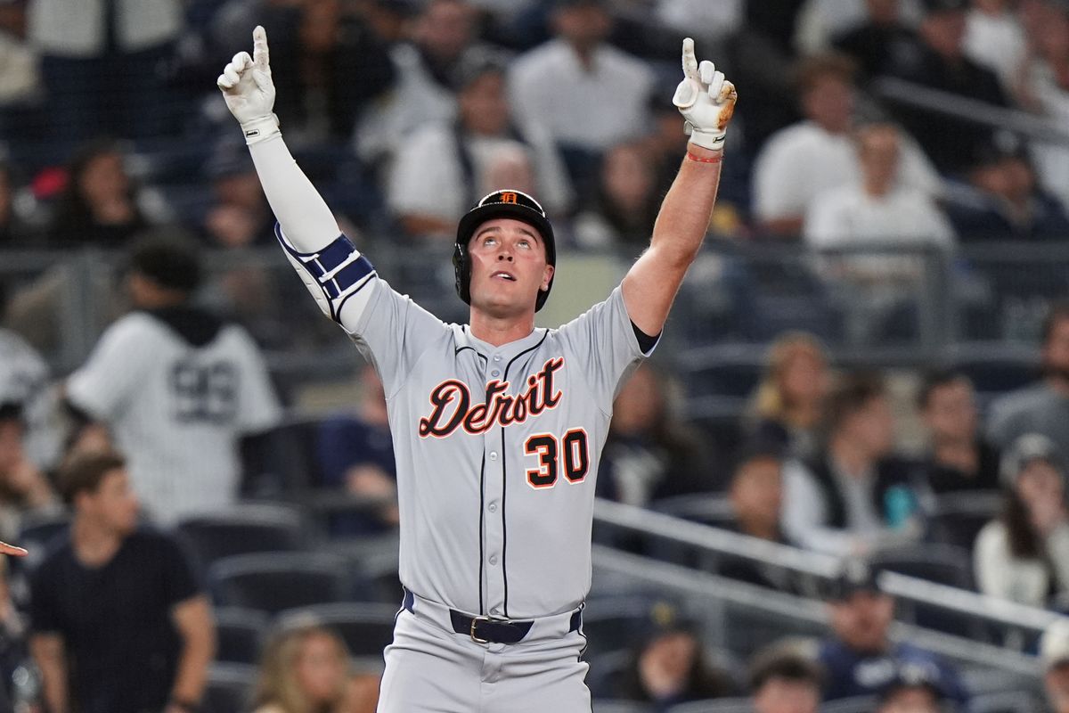 NEW YORK (AP) — Parker Meadows hit a go-ahead single to spark a nine-run seventh inning and Kerry Carpenter added a two-run triple as the Detroit Tigers took advantage of wild relievers Fernando Cruz and Mark Leiter Jr. in a 12-2 victory over the New York Yankees on Tuesday night.