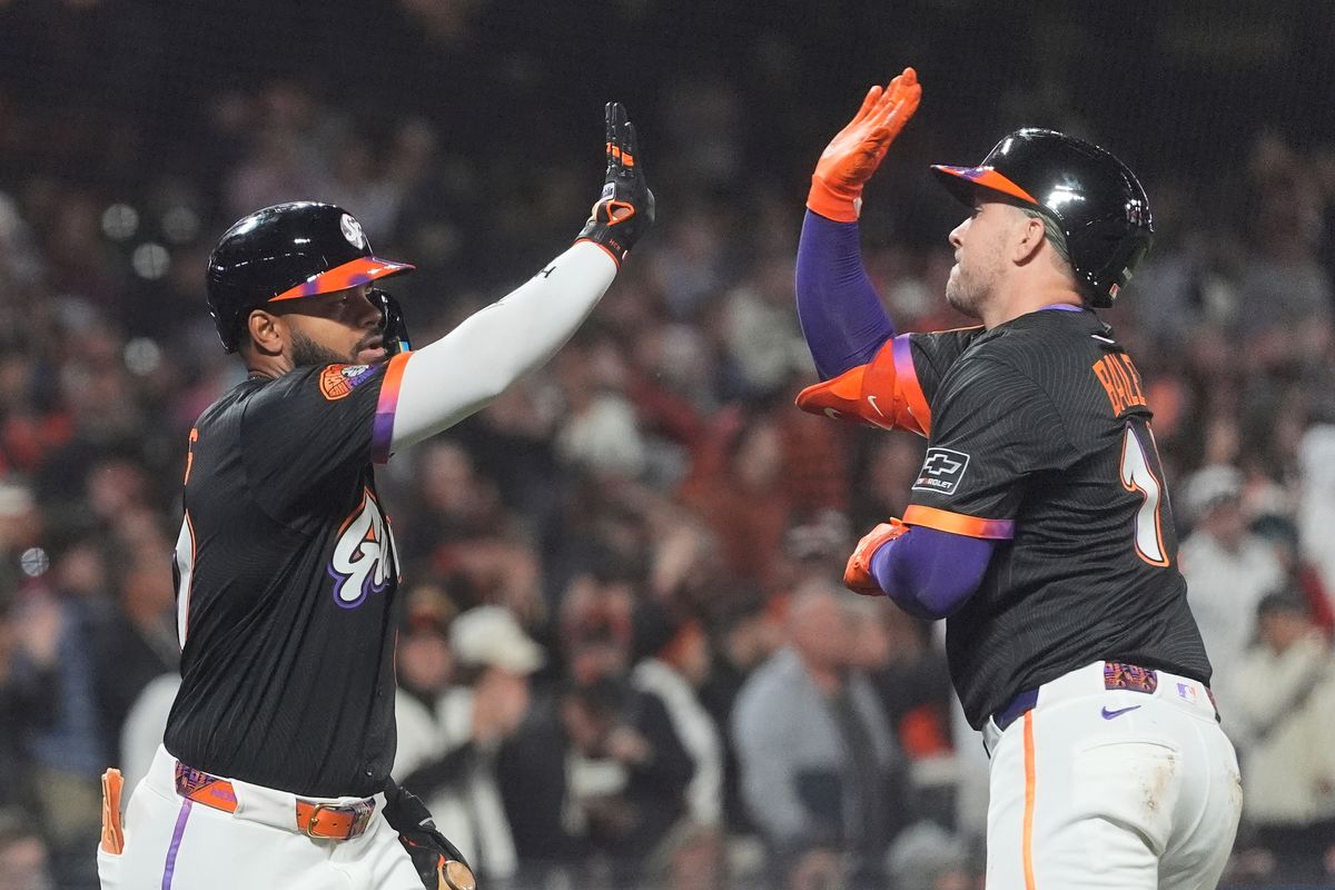 Patrick Bailey also homered and Casey Schmitt added a sacrifice fly in the fourth as the teams played through intermittent rain and a steady mist hovering above the diamond.