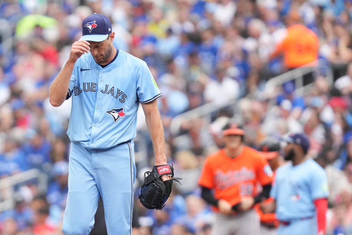 Orioles starter Tomoyuki Sugano was hit on the left foot by Vladimir Guerrero Jr.’s 113 mph liner with two outs in the first. The ball ricocheted to catcher Samuel Basallo, who threw Guerrero out. Albert Suárez was warming in the bullpen in the top of the second but Sugano came out for the bottom half and struck out the side.