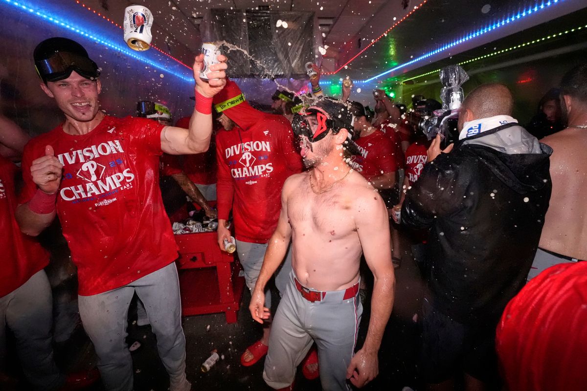 LOS ANGELES (AP) — A barechested Bryce Harper poured a bottle of Champagne over his head, soaking in the Philadelphia Phillies’ second consecutive NL East title.