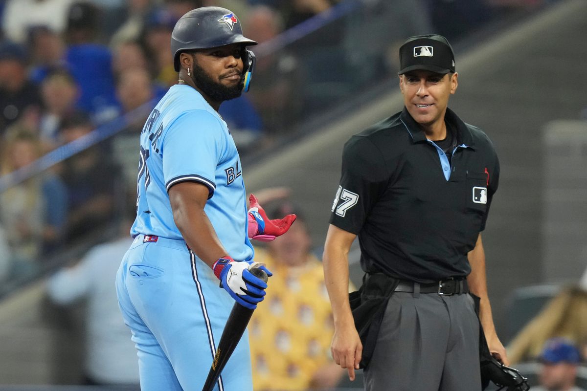 Toronto slugger Vladimir Guerrero Jr. was ejected by plate umpire Gabe Morales for arguing after he struck out looking in the seventh. Hitting coach David Popkins was tossed for arguing from the dugout.