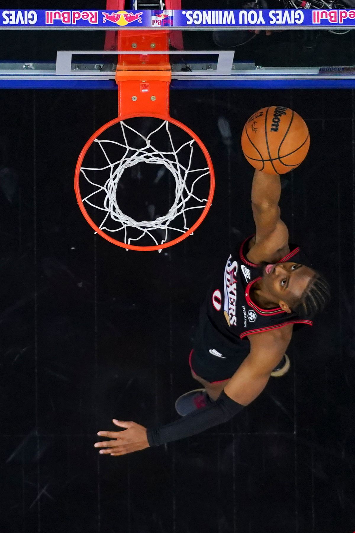 Flagg drew “oohs” and “aahs” from the Philly crowd several times, including when he dribbled behind the back to set up a driving layup early in the third quarter and after a two-handed dunk along the baseline later in the period. He also went coast-to-coast for an impressive layup late in the first half.